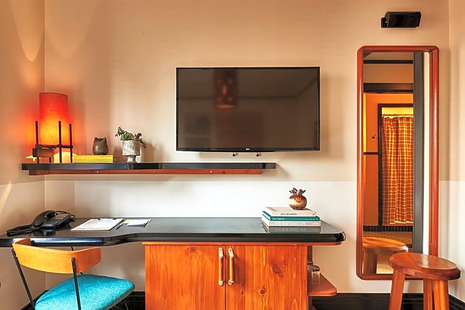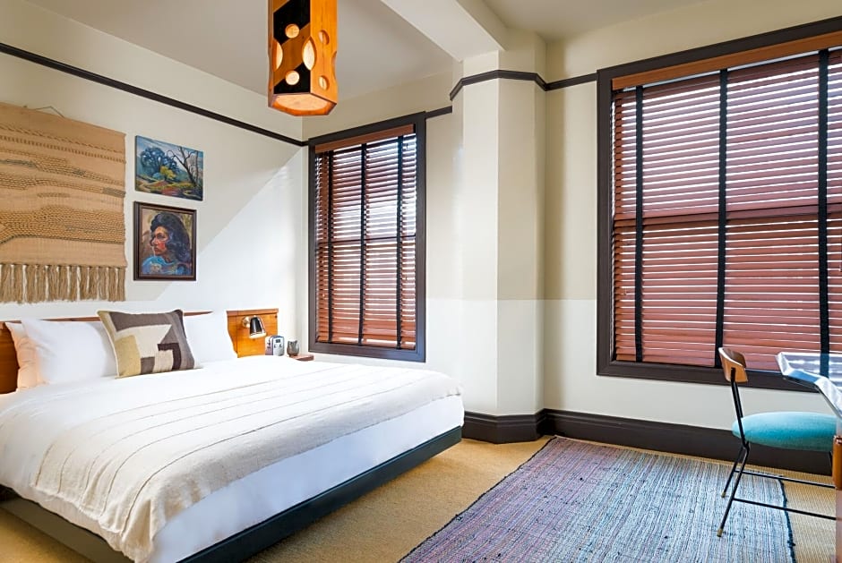 This private room offers a 43" LED HDTV, a large work desk, and free Wifi. Rooms are designed by Roman & Williams, with hand woven textiles and artwork from local Los Angeles artists.