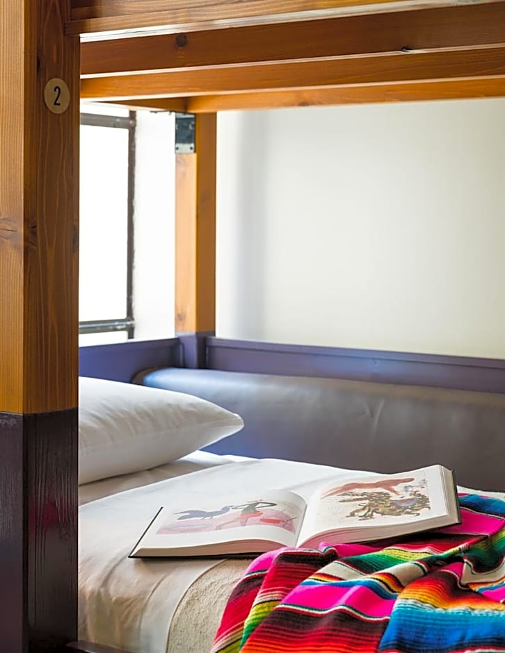 This ladies-only Quad accommodates four female guests, with custom cedar bunk-beds and a private, private bathroom. Beds feature built-in privacy screens, outlets and reading lights. There is also free WiFi, secure in-room lockers, linens, blankets, and towels for each guest. Our rooms have been thoughtfully designed by Roman & Williams, with hand woven textiles and artwork from local Los Angeles artists.